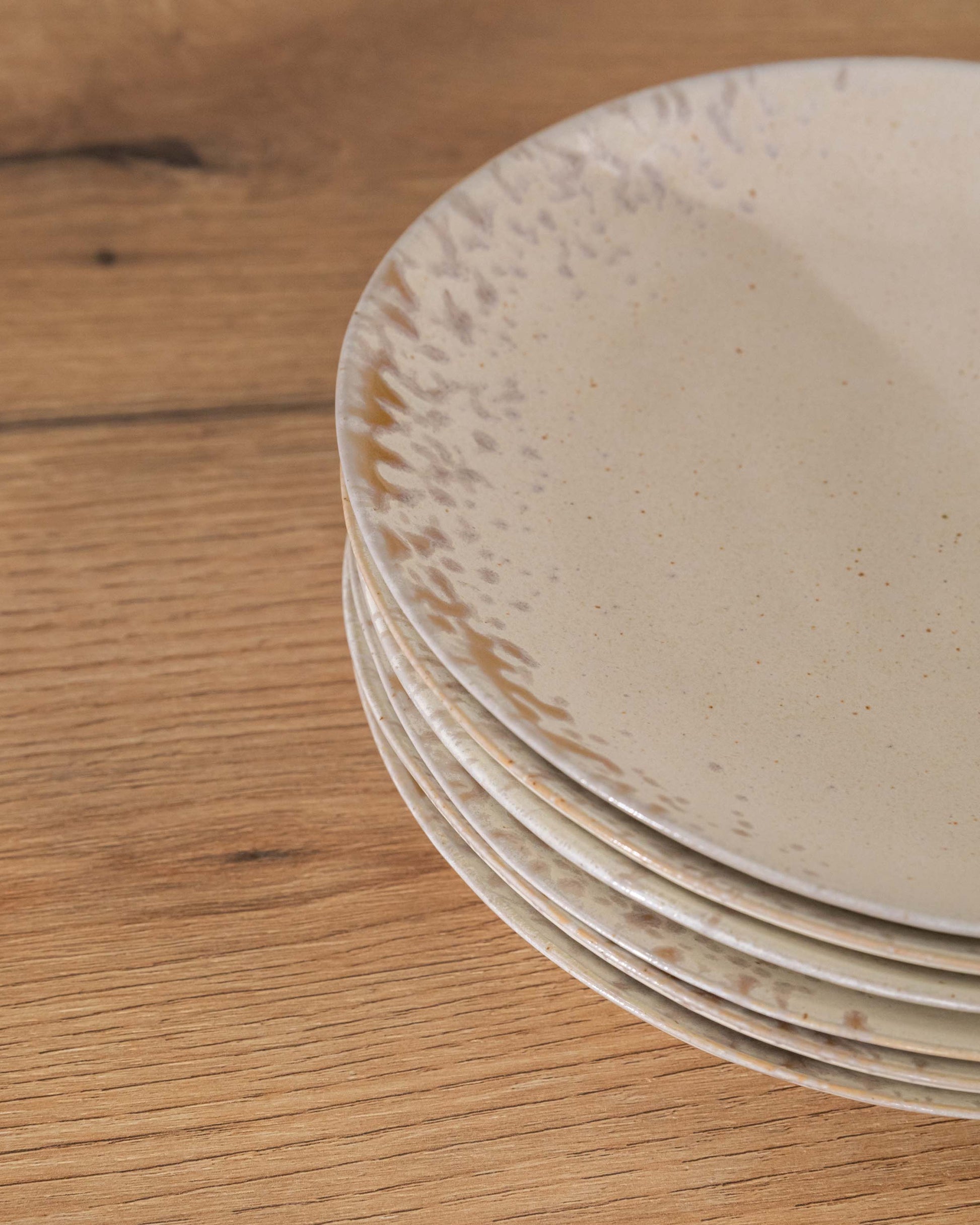 Plato de postre elaborado en gres. Diseño liso con estampado de coral.