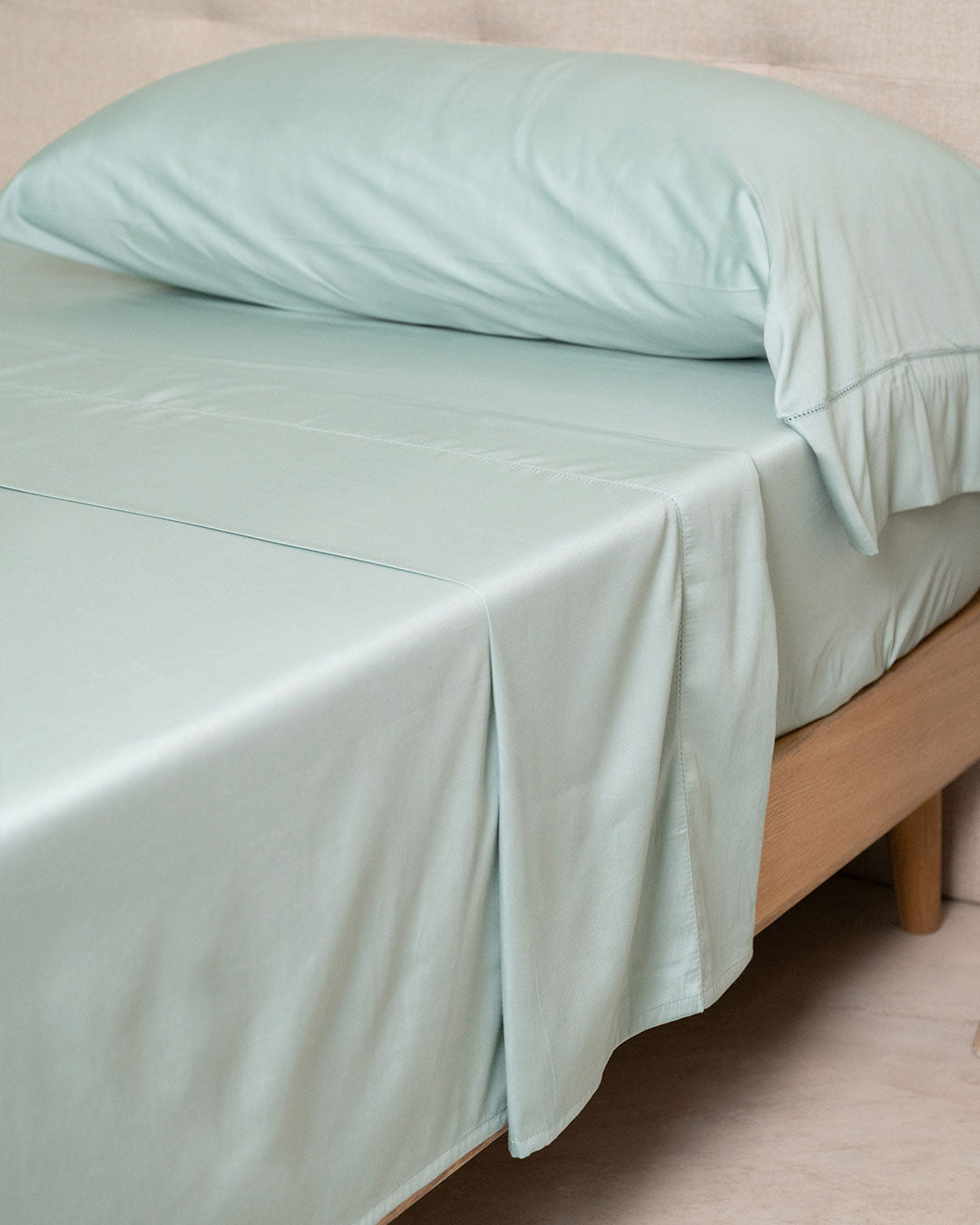 Juego de Sábanas Satén con Vainica Lisas Verde Keike