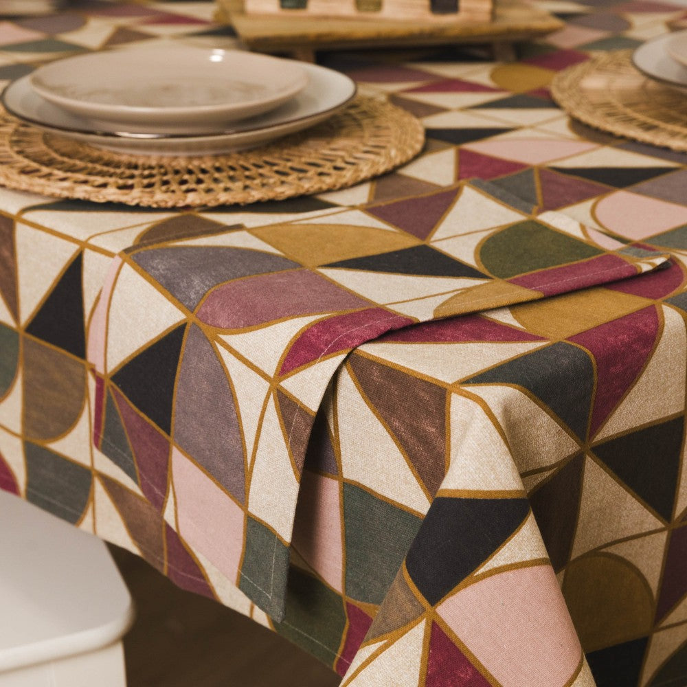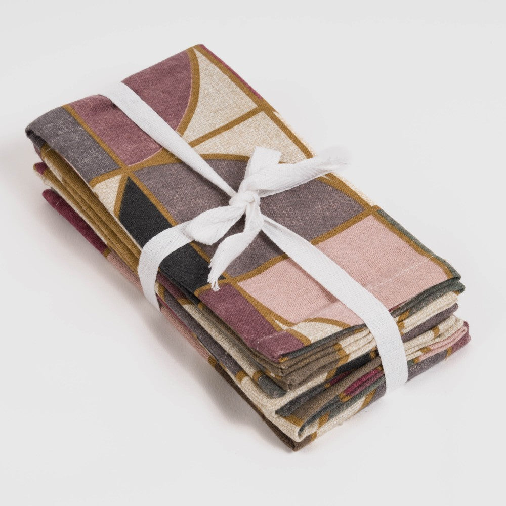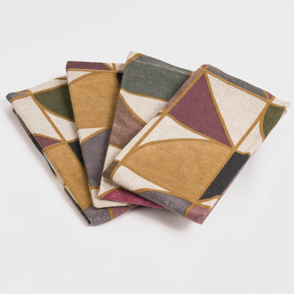 Incluye cuatro servilletas con un diseño colorido de diferentes figuras geométricas en varios colores sobre un fondo natural, estas servilletas te ayudarán a dejar las típicas de papel de un solo uso y a reducir la huella medioambiental, una opción reutilizable. Tacto cómodo y liso.