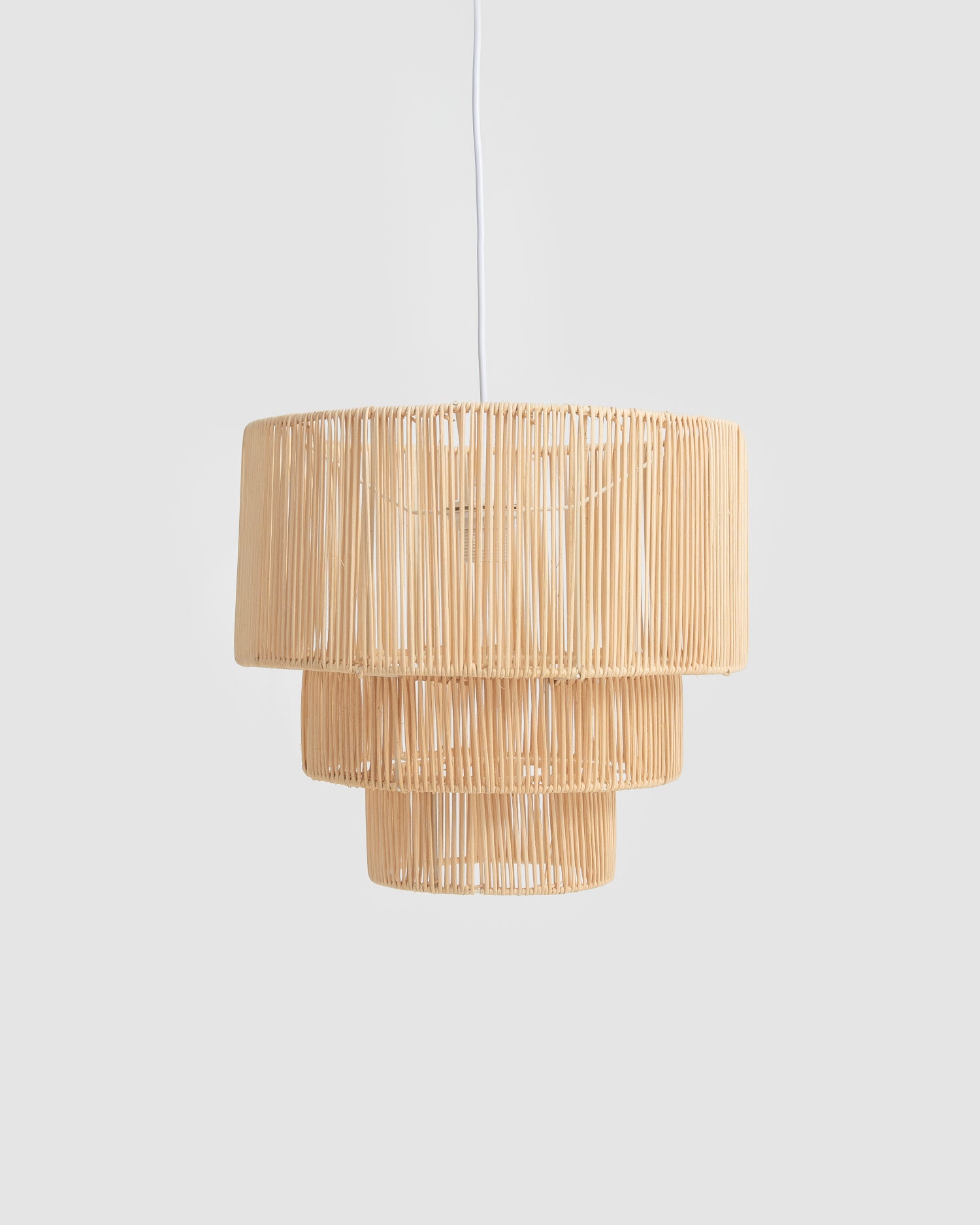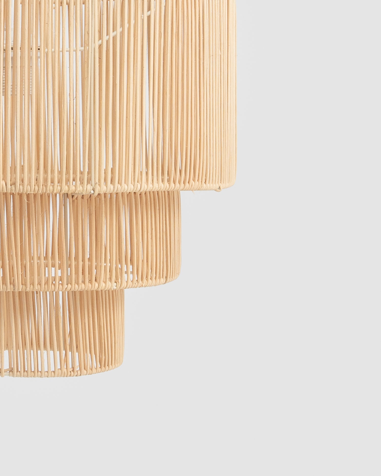 Lámpara de techo en formato escalonado fabricada en mimbre. Aporta una iluminación muy especial a cualquier estancia del hogar.